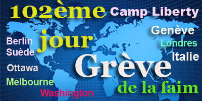 Aujourd’hui, la grève de la faim des habitants du camp Liberty et des Iraniens à Genève, Berlin, Londres, Ottawa, Melbourne, Rome, Sotckholm, et Washington entre dans son 102e jour.