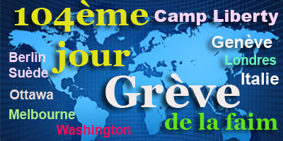 Aujourd’hui, la grève de la faim des habitants du camp Liberty et des Iraniens à Genève, Berlin, Londres, Ottawa, Melbourne, Rome, Sotckholm, et Washington entre dans son 104e jour.