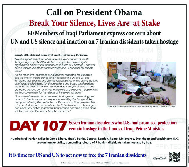 Aujourd’hui, la grève de la faim des habitants du camp Liberty et des Iraniens à Genève, Berlin, Londres, Ottawa, Melbourne, Rome, Sotckholm, et Washington entre dans son 108e jour.