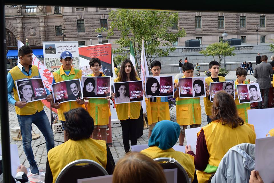 Les supporters iraniens suédois du principal groupe d’opposition iranien de l’Organisation des Moudjahidine du Peuple d’Iran (OMPI ou MEK) ont également commémoré le 28e anniversaire du massacre de 30.000 prisonniers politiques en 1988 en Iran. Les prisonniers politiques étaient principalement affiliés à l’OMPI (MEK).