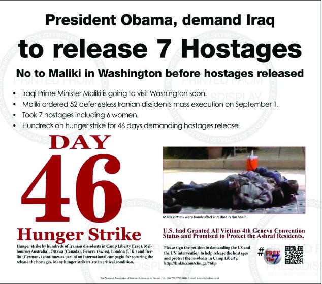 46ème jour de grève de la faim des habitants de Liberty et d’Iraniens de 6 pays