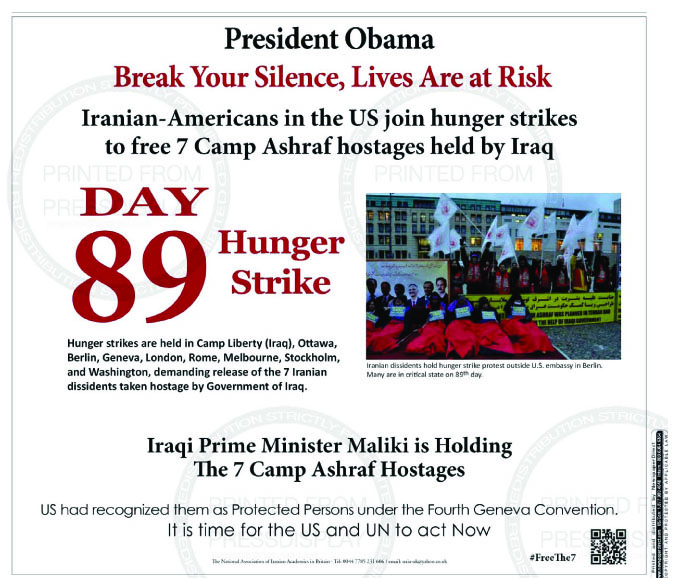 89e jour de grève de la faim des opposants iraniens pour la libération des sept otages d’Achraf