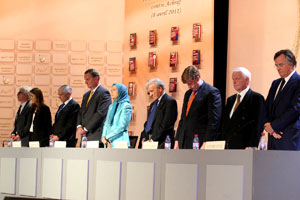 La présidente élue de la Résistance iranienne s’exprimait dans une conférence sur le massacre commis à Achraf le 8 avril par les forces irakiennes aux ordres de Nouri Maliki. Une vidéo bouleversante a été diffusée sur cette tuerie. Les nombreux orateurs se sont penchés sur cette crise, la responsabilité de la communauté internationale et le rôle de la Résistance iranienne dans l’édification de l’Iran de demain. Aux côtés de la Présidente élue du CNRI Maryam Radjavi, il y a avait le Pr. Elie Wiesel, prix Nobel de la Paix, le général James Jones, ancien conseiller à la Sécurité nationale du président Obama, le général Wesley Clarke, qui a été commandant suprême des forces de l’OTAN, Ingrid Betancourt, ancienne candidate à la présidentielle colombienne, Patrick Kennedy, congressman américain et neveu de feu le président Kennedy, William Bourdon, avocat des droits de l’homme, Jean-Pierre Spitzer, expert en droit européen et modérateur de la conférence, ainsi que le député suédois Kent Olsson.