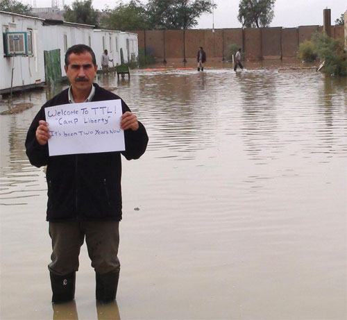 Depuis un an, les habitants de Liberty ne cessent de demander qu’une entreprise irakienne vienne asphalter les routes et faire les réfections nécessaires dans les canaux d’écoulement des eaux. Mais les agents des services du premier ministre l’interdisent et imposent cette situation à la population. Le gouvernement irakien empêche l’entrée d’articles de première nécessité dans ces conditions comme des tuyaux en tous genres, des pompes, de la colle anti-fuites pour les baraquements et même des vêtements imperméables, comme des ponchos.