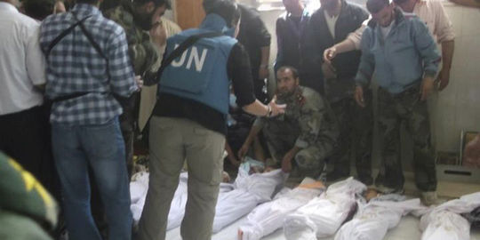 A Damas, le général Robert Mood, chef des observateurs, a également condamné « la tragédie brutale » et affirmé que les observateurs avaient compté plus de 92 morts, dont 32 enfants de moins de 10 ans, ajoutant que des équipes poursuivaient le décompte sur place.