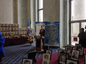 Madame Ros-Lehtinen a affirmé pendant son discours : « Les photos des victimes de ce massacre nous rappellent le fait que bien que ce crime se soit produit à un certain époque coûtant la vie aux 30.000 personnes, mais son genre continue et nous en avons vu récemment au camp Liberty en Irak, dont les habitants ne jouissent pas de la protection promise par les autorités irakiennes et américaines. »