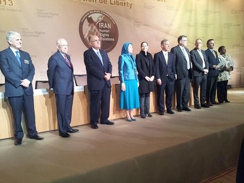 Le 7 décembre 2013 à Paris, à la veille de la Journée internationale des droits humains, une conférence a mis en garde contre le fait d’occulter les crimes contre l’humanité à Achraf et les exécutions collectives en Iran sous prétexte de négociations avec les mollahs sur le nucléaire. Des personnalités américaines et européennes ont affirmé qu’il ne fallait pas réduire la pression des sanctions tant que le régime n’aura pas totalement abandonné son projet de fabrication de la bombe atomique.