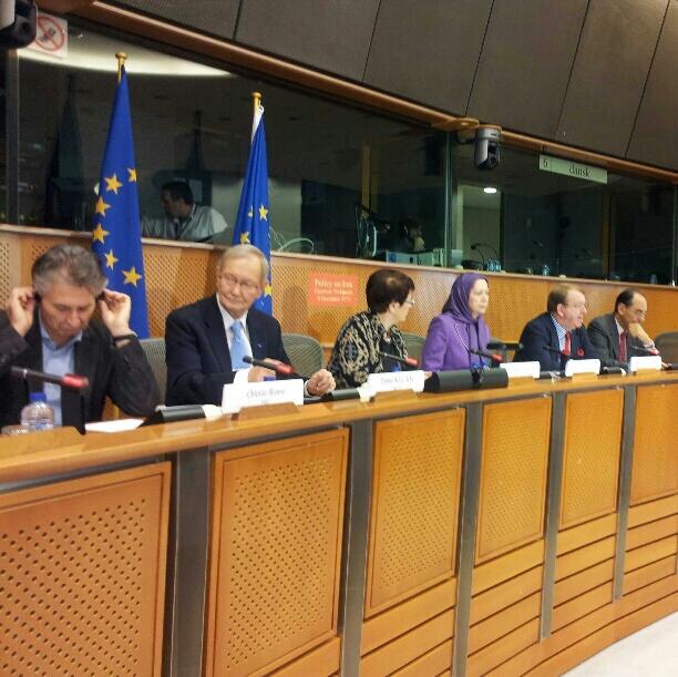 Communiqué de presse – 4 décembre 2013 – Une réunion majeure au Parlement européen le 4 décembre s’est penchée sur les violations des droits humains en Iran, l’accord de Genève, le massacre et la prise d’otages au camp d’Achraf en présence de nombreux eurodéputés de divers groupes politiques et avec la participation of Mme Maryam Radjavi, Présidente élue du Conseil national de la Résistance iranienne (CNRI). Dans cette réunion, présidée par l’eurodéputé Struan Stevenson, plusieurs membres éminents du Parlement européen comme le Vice-président du PE Alejo Vidal-Quadras, le premier Vice-président du groupe des socialistes et démocrates Stephen Hughes, le membre du Bureau du PE Jim Higgins et l’ancienne présidente du Bundestag Rita Süssmuth ont pris la parole. Les participants ont souligné les points suivants :