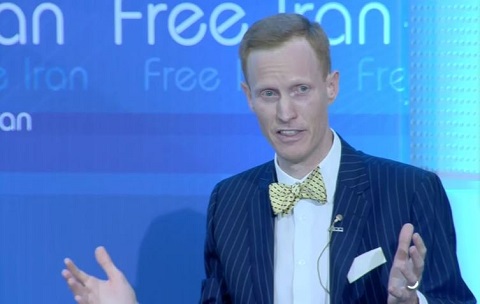 18 h 20: Prof. Ivan Sascha Sheehan de l’Université de Baltimore: « La compétition porte finalement sur le droit de penser librement. Le régime craint la vérité, il craint les faits. Nous devons organiser des groupes comme celui-ci et élargir la vérité. Nous devons donner au peuple iranien une idée de ce qui se passe autour d’eux et de l’idée qu’il existe une alternative viable.