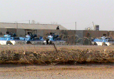 Depuis 6h30 ce matin (vendredi 20 avril) une unité mécanisée anti-émeute, constituée de blindés et de mitrailleuses lourdes, est arrivé à Liberty et s’est installé dans les quatre côtés du camp aux postes de police.
