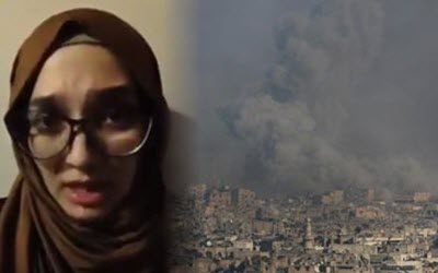 Lina Shami : « À tous ceux qui entendent ma voix : Nous sommes confrontés à un génocide ici à l’Est d’Alep. Ceci pourrait être mon dernier message vidéo. Plus de 50 mille civils qui se sont soulevés et ont lutté contre la dictature d’Assad font face à la menace d’exécution ou d’être tués dans le bombardement. »