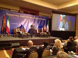 Tous les orateurs ont dénoncé le traitement infligés aux dissidents iraniens détenus dans un camp de prisonniers en Irak. Pendant le conflit en Irak, le gouvernement américain s’était engagé à les protéger. Après le retrait des forces américaines de l’Irak, le gouvernement irakien, que Giuliani qualifie de « marionnette de l’Iran », les a assassinés.