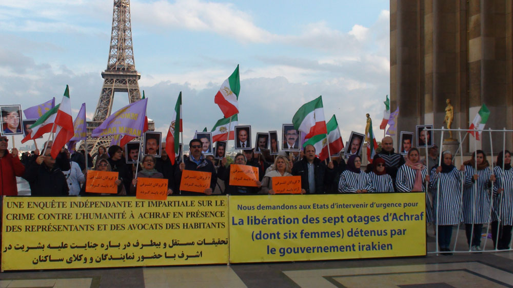 CNRI – Des Iraniens se sont rassemblés samedi à Paris a pour demander la libération immédiate des sept réfugiés iraniens dont six femmes kidnappés par les forces irakiennes. Sur le Parvis des droits de l’homme à Trocadéro ces manifestants qui se réunissent depuis plusieurs semaines ont condamné le 1 massacre des opposants iraniens du camp d’Achraf, en Irak en début septembre.