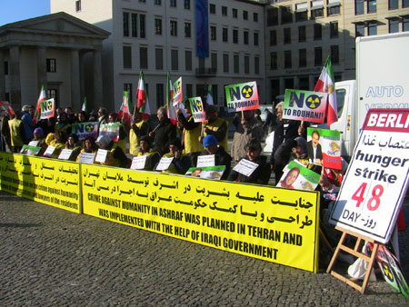 Une dizaine de membres des Moudjahidine du peuple d’Iran protestaient devant l’ambassade ce vendredi 18 octobre, juste à côté de la porte de Brandebourg.