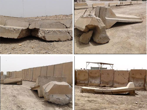 Dans un autre mensonge stupide, Kobler écrit : « on m’a dit que les murs en T on été utilisés comme béton comprimé pour les routes ou le terrain de sport ». Lors des premiers mois de l’arrivée des habitants à Liberty (de février à avril 2012) les forces irakiennes ont retiré du camp, malgré les protestations des habitants, les 17.500 murs de protection en T. Lors de ce transfert, des murs en T sont tombés et se sont brisés et sont depuis restés à cet endroit dans le camp (voir les photos montrant certains d’entre eux). A présent, pour justifier le refus du gouvernement irakien de ramener les murs en T, Kobler veut mettre sur le dos des habitants ces murs en T cassés, bien que nul ne sache comment ces morceaux de bétons peuvent servir pour un terrain de sport. Pour construire un petit terrain de sport, les habitants ont travaillé des jours et des jours d’affilé pour tasser et aplanir le sol à la main et avec des outils fabriqués à la main. Les observateurs de la MANUI ont pris à maintes reprises films et photos de ce travail exténuant et entendu les protestations des habitants dans ce domaine.