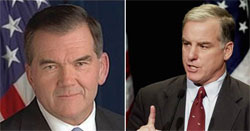 Howard Dean est l’ancien gouverneur démocrate du Vermont. Il a été président du parti démocrate de 2005 à 2009. Tom Ridge est l’ancien gouverneur républicain de la Pennsylvanie. Il a été le premier secrétaire à la Sécurité du territoire dans l’administration du président George W. Bush.