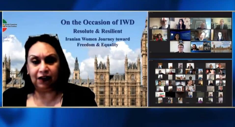 Le lundi 8 mars, pour marquer la Journée internationale de la femme, la Commission des femmes du Conseil national de la Résistance iranienne (CNRI), aux côtés du Comité international pour un Iran démocratique et du Comité britannique pour la liberté en Iran (BCFIF), ont organisé une conférence en ligne.
