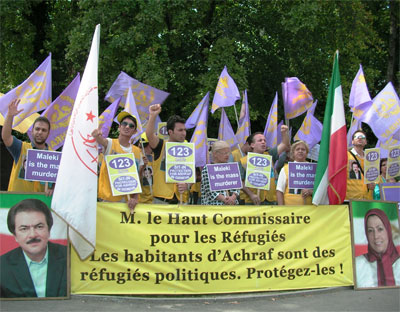 Le Camp d’Achraf, situé dans le nord de l’Irak, abrite des membres de l’Organisation des Moudjahidines du Peuple d’Iran (OMPI) depuis plus de 20 ans. Ce sont des personnes protégées en vertu de la Quatrième Convention de Genève, mais les forces irakiennes sous le commandement de Maliki, le Premier ministre irakien, ont attaqué et tué, à plusieurs reprises, les résidents du camp.