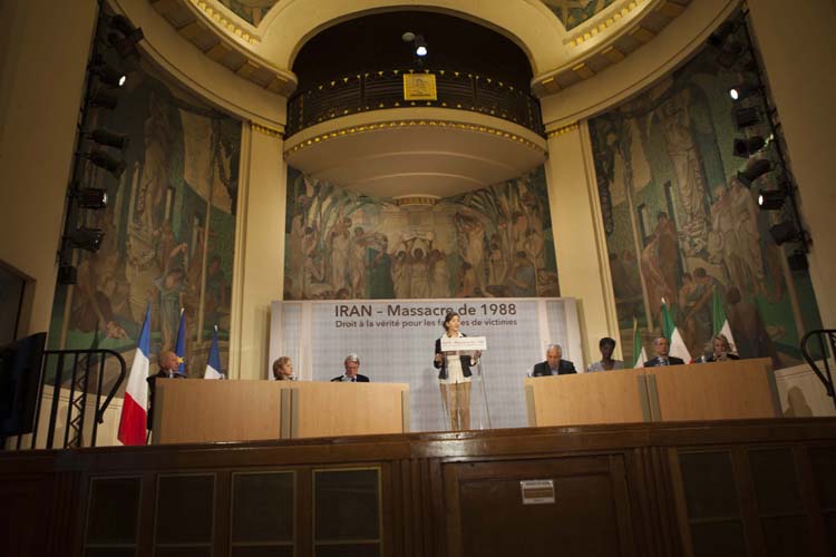 Alors il nous faut nous battre pour demander d’abord à l’Europe de revenir sur ce qu’elle est, d’exiger que les droits de l’homme passent avant tout. De demander à l’ONU de donner une initiation à l’investigation sur ce qui s’est passé en 1988. Il est important qu’une commission d’investigation soit nommée au sein du Haut-Commissariat pour les droits de l’homme. Le haut-commissaire est en ce moment un prince jordanien qui a lui-même participé dans la création de la Cour pénale internationale. C’est à lui que nous nous adressons, en lui demandant de ne plus laisser passer le temps, d’agir immédiatement pour qu’une enquête soit ouverte, qui nous permette rapidement de faire venir les criminels devant la justice internationale. Pour que finalement justice soit faite et pour que ces crimes-là ne continuent pas à se manifester en Iran aujourd’hui. Merci. »