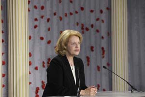 Et vous incarnez aussi cette moitié de l’humanité. Alors nous vous souhaitons de ne pas vous laisser abattre. Parce que comme disait Corneille, « à vaincre sans péril on triomphe sans gloire ». Les périls ne manquent pas, mais vous êtes une digne représentante de la gente féminine dans le monde, comme madame Bettencourt qui a un moment donné a aussi lutter, et bien voilà. Le poète a dit que la femme est l’avenir de l’homme ! Espérons-le. »