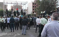 La pendaison est la méthode habituelle des exécutions en Iran. Les exécutions judiciaires ont généralement lieu le matin au lever du soleil, souvent sur la scène du crime ou dans un centre-ville. Les familles des victimes et des détenus se réunissent tandis que les autorités se préparent à pendre le condamné à des grues.