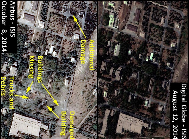 Le rapport de l’ISIS publié le jeudi 9 octobre affirme que d’après des photos satellites, une partie du complexe militaire de Partchine serait détruite. L’institut ajoute : « Deux bâtiments qui existaient encore sur ce site en août 2014, n’y sont plus. Il semble qu’un troisième bâtiment est fortement endommagé. Sur ce site, au total six bâtiments seraient détruits ou endommagés.»