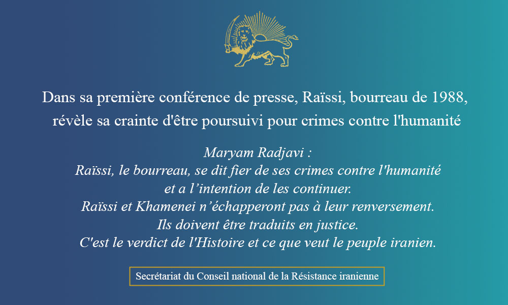 Dans sa première conférence de presse post-électorale, Raïssi, bourreau du massacre de 1988 et assassin des Moudjahidine du peuple (OMPI/MEK), a exprimé sa crainte de poursuites internationales pour le massacre des prisonniers politiques et crimes contre l’humanité. Dans une fuite en avant, il n’a pas hésité à dire : « en tant que juriste, j’ai toujours défendu les droits du peuple. Les droits de l’homme constituent le point central que j’ai toujours suivi dans toutes mes responsabilités (…) Tout ce que j’ai entrepris a toujours été en défense des droits de l’homme. »