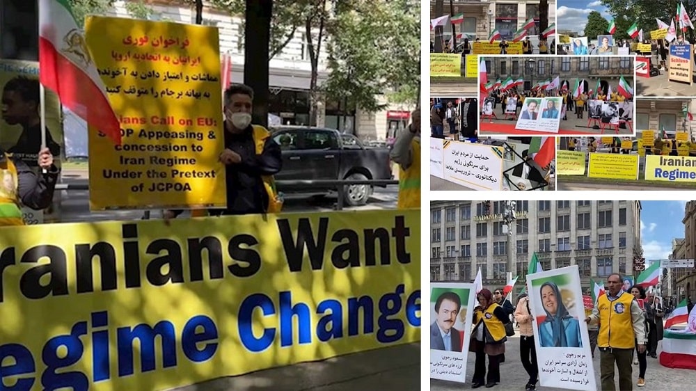 Dans tous les pays d’Europe, les Iraniens ont souligné dans leurs protestations que le régime est dans une impasse. Ils ont particulièrement fait référence à l’intention du guide suprême du régime, Ali Khamenei, de retirer Ebrahim Raisi des urnes dans le cadre de la politique de contraction du régime. Ils ont fait référence au rôle de Raisi dans le massacre de plus de 30 000 prisonniers politiques en 1988 et dans l’oppression du peuple iranien ressuscité lors des grandes manifestations iraniennes en 2019.