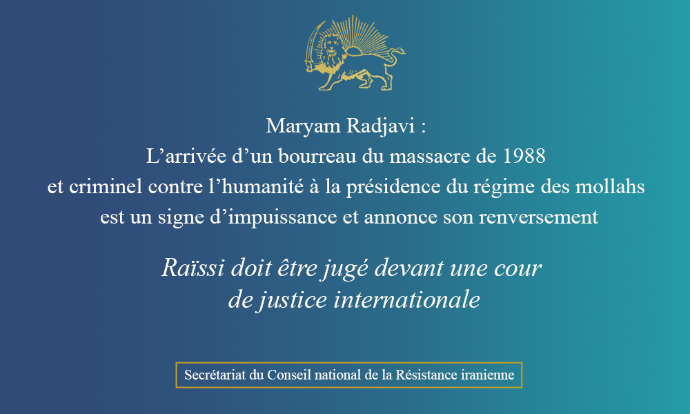 Raïssi, bourreau du massacre de 1988 et tueur des Moudjahidine du peuple (OMPI/MEK) est la dernière carte de Khamenei pour la survie du régime. L’arrivée de ce meurtrier de masse et criminel contre l’humanité à la présidence du régime est un signe d’impuissance, de fin de course et de situation de renversement. Il doit être jugé devant une cour de justice internationale.