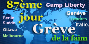 En même temps, la grève de la faim à Liberty, Genève, Londres, Berlin, Ottawa et Melbourne en est à sa treizième semaine et de nouveaux volontaires ont rejoint le mouvement. Des Iraniens à Rome et Stockholm ont aussi entamé une grève de la faim la semaine dernière.
