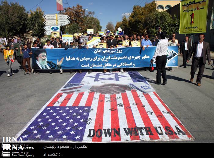 Pour une description de l’ennemi, Khamenei a expliqué :  » la puissance dominatrice s’incarne dans sa forme la plus complète par les États-Unis d’Amérique. Notre position contre l’Amérique s’explique par son comportement, sa nature et son attitude d’ingérence et de domination ».