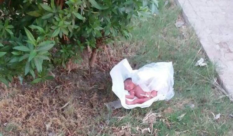 Une photo fait le tour des réseaux sociaux avec pour titre : « Les travailleurs des espaces verts ont trouvé un nouveau-né de sexe féminin dans la rue 24-Metri d’Ahvaz. Le bébé a été abandonné sans vêtements aujourd’hui à 18h. »