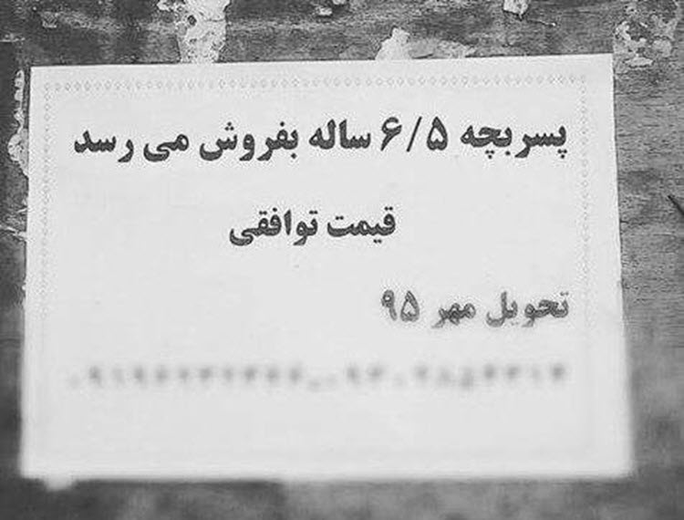 « Les publicités ne sont pas seulement quelques dessins sur les murs des rues. Vous pouvez également trouver des publicités vendant des bébés sur des sites web. Dans une de celles-ci, la vendeuse raconte son histoire : « Je suis une femme de 32 ans et enceinte de quatre mois. Ceux qui n’ont pas d’enfants et qui souhaitent prendre en charge le mien, veuillez me contacter s’il vous plaît. Donc ils auront également un enfant. Je suis une femme célibataire sans ressource et je ne peux pas élever un enfant. »