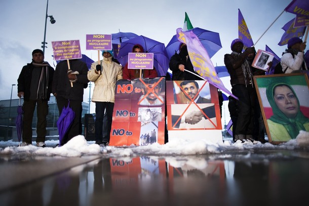 Reuters, 6 décembre – Des membres de l’opposition iranienne manifestent devant les Nations Unies pour protester contre le programme nucléaire de l’Iran, à Genève le 6 décembre 2010.