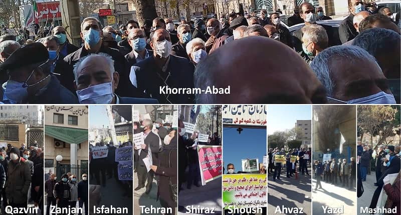 Le dimanche 3 janvier, des centaines de retraités ont organisé une manifestation nationale à travers l’Iran. Ces manifestations ont eu lieu dans 22 villes iraniennes, notamment à Téhéran, Kermanshah, Tabriz, Khorramabad, Arak, Ispahan, Shiraz, Ahvaz, Qazvin, Hamedan, Rasht, Sanandaj, Shush, Karaj, Neyshabur, Yazd, Bojnourd et Shushtar. Les retraités ont protesté contre le manque de parité entre leurs salaires et l’inflation et les prix élevés. À Karaj, les forces de sécurité de l’État ont empêché les retraités de prendre des photos et des vidéos. À Suse, dans le sud-ouest de l’Iran, en plus des manifestations devant le Bureau des services sociaux, les retraités ont également organisé une marche de protestation.