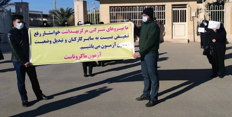 Dimanche, des employés contractuels du centre de santé de Bafq, dans la province de Yazd, ont organisé une manifestation devant le gouvernorat. Ils ont exigé leurs chèques de paie retardés et leurs primes d’emploi. Ils ont également protesté contre la discrimination entre les travailleurs contractuels et les travailleurs permanents.