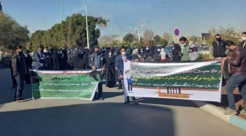 Samedi, les enseignants contractuels de la province de Yazd ont organisé une manifestation devant le gouvernorat, réclamant leurs retards de salaire et les promesses non tenues des fonctionnaires concernant leur statut professionnel.