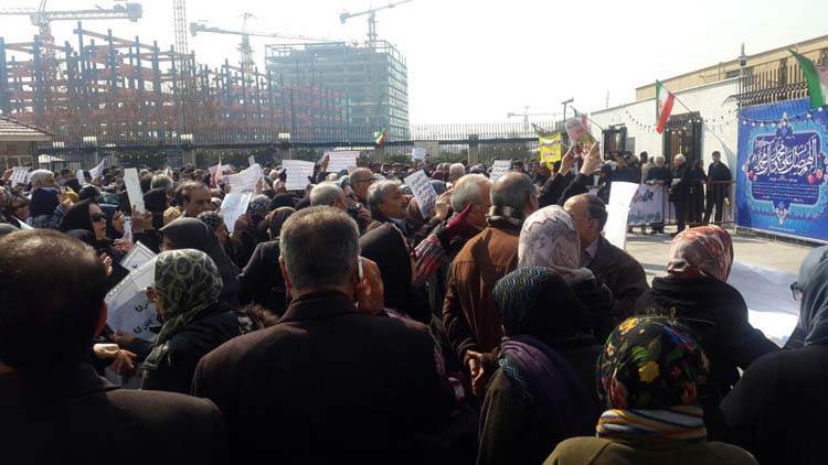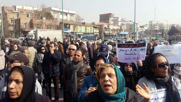 Le mardi 22 février, des enseignants retraités venus de différentes villes en Iran ont participé à un rassemblement de protestation à Téhéran, devant le parlement du régime des mollahs. Les agents du régime étaient massivement déployés devant le parlement et empêchaient que les gens filment ou prennent des photos de cette manifestation.