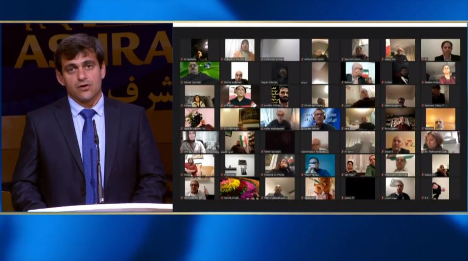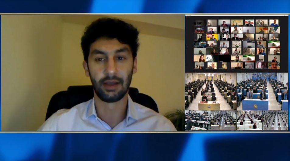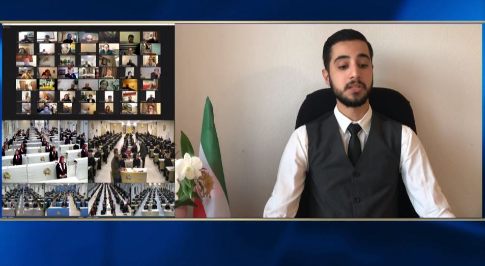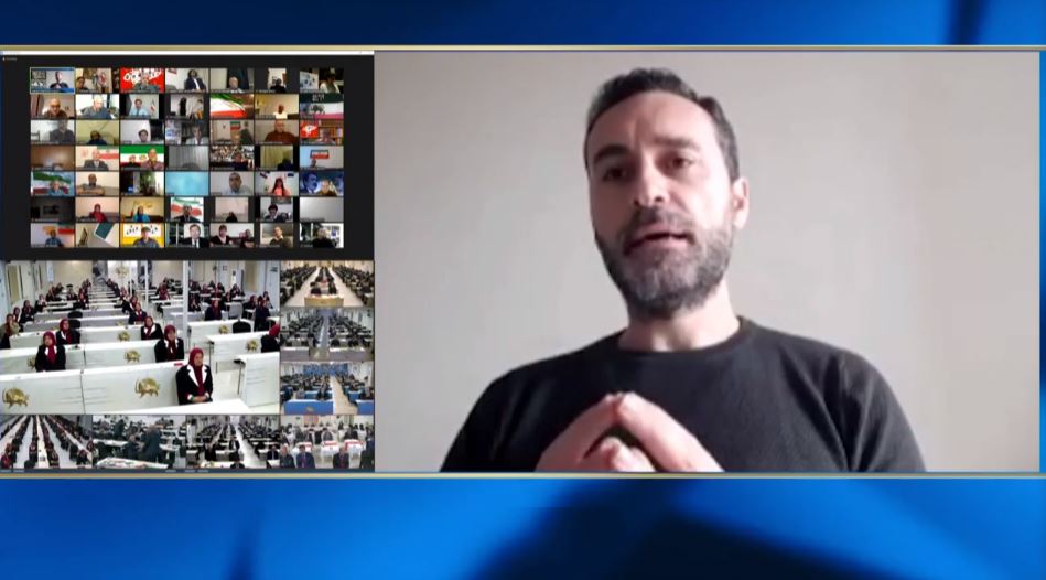 Amir-Pasha Borjkhani prend la parole lors de la conférence en ligne d’Achraf-3 :