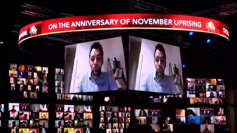 Pour marquer l’anniversaire des manifestations de novembre 2019 en Iran, les Iraniens et les soutiens de l’opposition démocratique ont commémoré le soulèvement lors d’une conférence en ligne mardi. La cité de la Résistance Achraf 3 participait à cette conférence par une émouvante cérémonie de commémoration. Les participants ont souligné leur volonté de continuer le soulèvement jusqu’au renversement du régime au pouvoir en Iran.