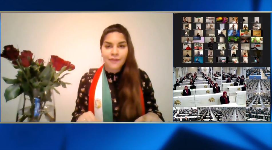 Pegah Jahanmiri prend la parole lors de la conférence en ligne: