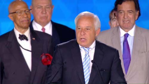 Rudy Giuliani, et Newt Gringrich,ont mis cela bien claire. Je représente aussi Patrick Kennedy qui n’a pas pu être là aujourd’hui. Nous sommes ici, démocrates et républicains et ne laissons pas Téhéran commettre d’autre erreur.