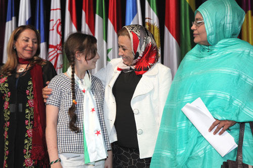 CNRI – Le 3 aout, lors d’une conférence à l’occasion du Ramadan, réunissant 31 délégations de pays arabo-musulmans autour de Maryam Radjavi, présidente élue de la Résistance iranienne, Maya Chami, petite syrienne a lancé un appel vibrant qui a interpellé toutes les consciences, appel à l’action et à la solidarité en faveur du peuple syrien qui se bat héroïquement contre trois tyrannies, celles de Syrie, d’Iran et d’Irak et contre le Hezbollah du Liban.