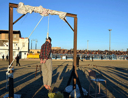 [photo : Un homme pendu dans un stade à Sabzevar, en Iran]