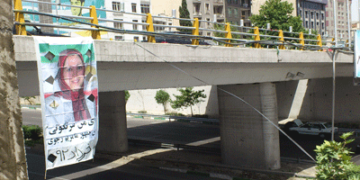Malgré la mobilisation d’un million de forces répressives, dans la soirée du jeudi 13 juin et tout le lendemain jour du scrutin, la jeunesse et les sympathisants de la Résistance iranienne ont poursuivi leurs activités contre la mascarade électorale. Ils ont couvert les murs du slogan « Je vote pour le renversement » et suspendu des portraits géants de Maryam Radjavi avec le slogan « Notre présidente : Maryam Radjavi », notamment au-dessus de l’autoroute Imam Ali de Téhéran.