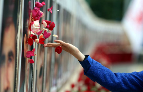 Washingtonpost.com, 6 septembre, Maryam Radjavi, présidente du Conseil national de la Résistance iranienne, une coalition politique de l’opposition, lors d’une réunion le 4 septembre à Auvers-sur-Oise, en banlieue de Paris, lance des pétales de rose sur les portraits de 52 personnes tuées le 1 septembre au camp de réfugiés d’Achraf en Irak. Une enquête a été ouverte sur la tuerie au camp de l’opposition iranienne au nord de Bagdad.