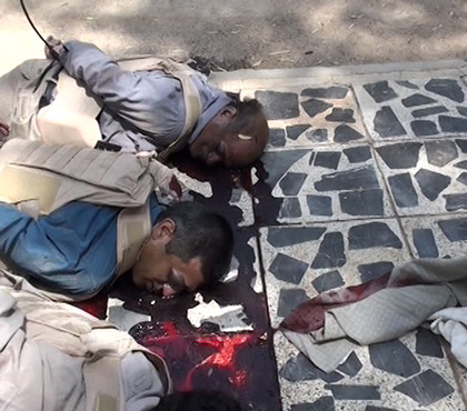 Sur la photo de droite, Rahman est au milieu, exécuté avec les mains liées derrière le dos.