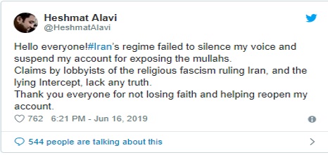 La référence au « média américain, The Intercept » est totalement déplacée et erronée. Car il s’agit en effet d’une autre tentative échouée de ce même régime sur le web à l’encontre de l’OMPI. Des informations mensongères portées par ledit média imprégné par les services de renseignements iraniens, ont cherché à démontrer qu’un individu nommé Heshmat Alavi, n’était qu’une fausse identité créée par l’OMPI.