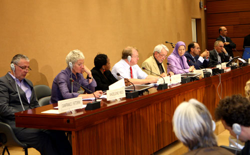 Il s’exprimait dans une conférence au siège européen de l’ONU, présidée par Miche Joli, secrétaire général de France Liberté – Fondation Danielle Mitterrand. Le panel accueillait Maryam Radjavi, présidente élue de la Résistance iranienne, Alejo Vidal-Quadras, Vice-président du Parlement européen, Struan Stevenson, président de la délégation du Parlement européen pour les relations avec l’Irak (qui a présenté un plan européen pour résoudre la crise d’Achraf), le Pr. Ruth Wedgwood, juriste, Sid Ahmed Ghozali, ancien premier ministre algérien, Nontombi Tutu, militante des droits humains et fille de l’archevêque Desmond Tutu et, Madeleine Rees, Secrétaire générale de la Ligue internationale des Femmes pour la Paix et la liberté, Christiane Perregaux, co-présidente de l’Assemblée constituante du Conseil de Genève, Marc Falquet, député au Grand Conseil de Genève.