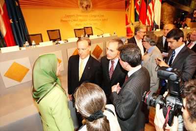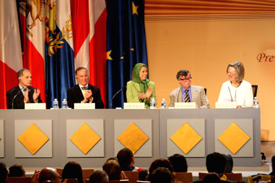 Sont intervenus à cette conférence présidée par Mme Anne-Marie Lizin, ancienne présidente du Sénat de Belgique : Maryam Radjavi, Howard Dean, président du parti démocrate américain (2004-2009), les députés français Jean-Philippe Maurer, Jean Dionis du Séjour, Abdolatifou Aly, le maire du 1er arrondissement de Paris Jean-François Legaret, l’ancien directeur de la DST Yves Bonnet, le magistrat François Colcombet, membre fondateur du Comité français pour un Iran démocratique, des juristes éminents comme Me Juan Garcès, avocat espagnol de premier plan, Mme Vera Gowlland-Debbas, professeur de droit international à l’université de Genève, et Me François Serres, directeur exécutif du comité international des juristes en défense d’Achraf.